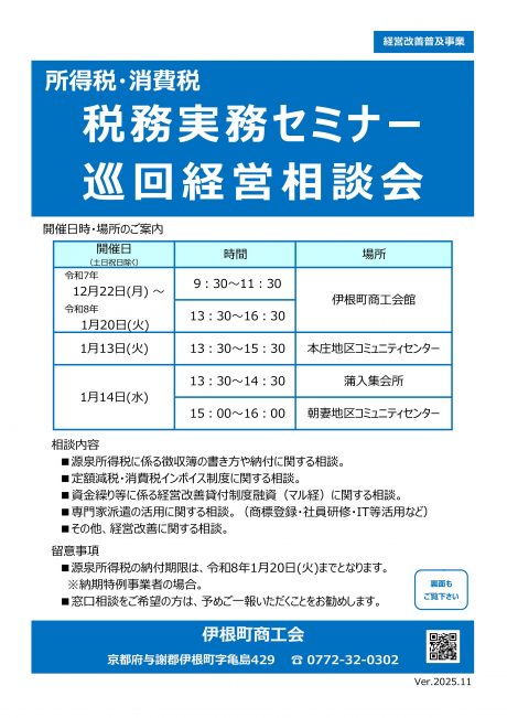 所得税・消費税 税務実務巡回相談会開催についてのご案内